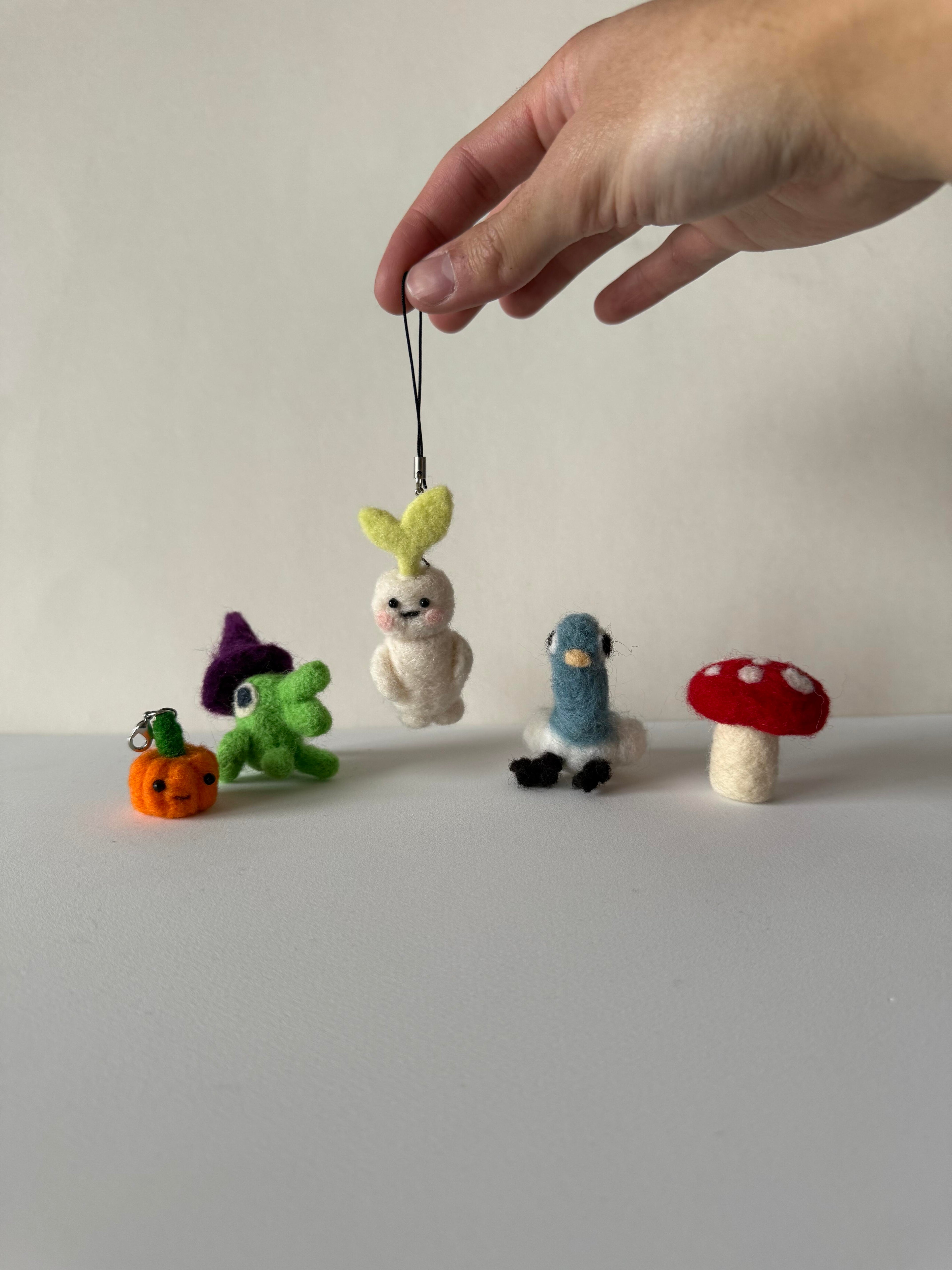 Custom mini felt creations to accompany you throughout your day. Purchase standalone, with a key chain or earring attachment.
